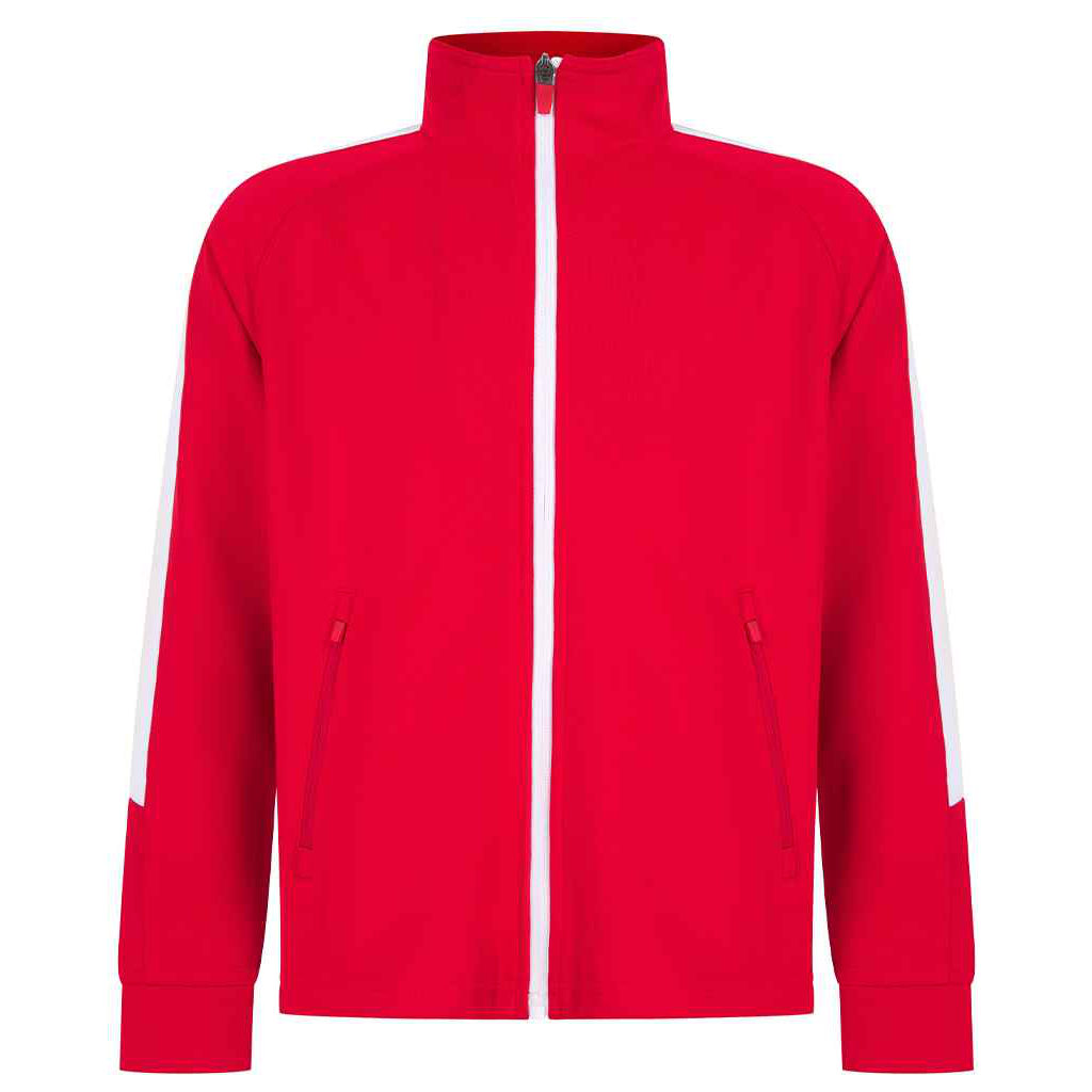 For information only - please contact us before purchasing. Knitted tracksuit top with contrast colour panels on outer sleeve. Contrast colour centre front zip. Zipped...